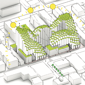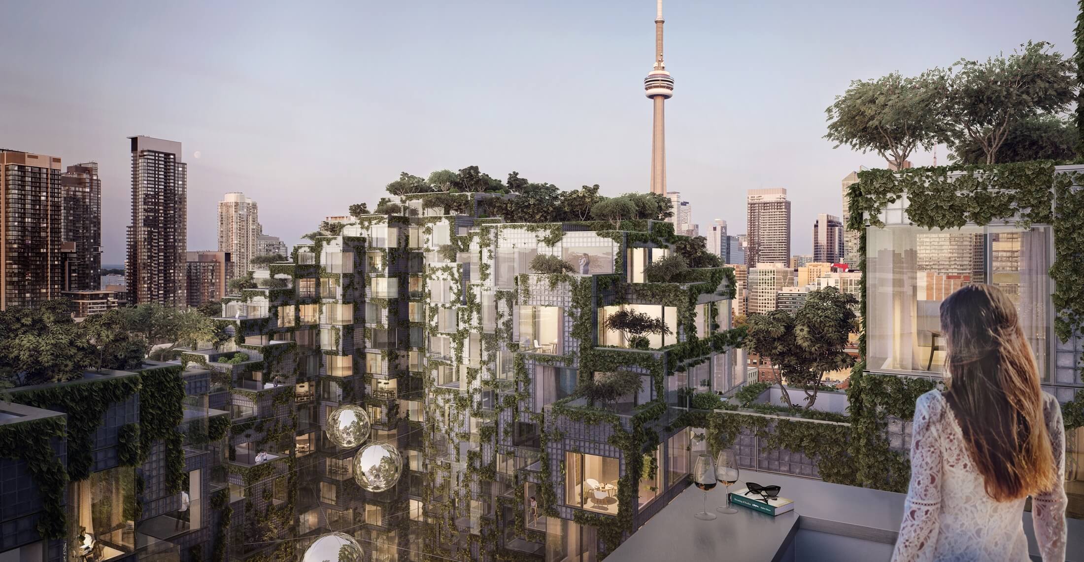 I always had a fascination with Habitat 67, well before I was actually able to see it in person. I think it began with my interest in the ideals behind the kibbutz and building a community. We thought of this project as a way to demonstrate how architecture can meet this challenge and, hopefully, on completion, that will be its test: can architecture bring people together? In many respects, I think the project has the potential to be more successful than Habitat 67, which after all, was an experiment built on an island in the middle of a river. Here, we have the opportunity to infill within an already vibrant, successful neighbourhood. King West is one of Canada’s truly great neighbourhoods. Walkable, interspersed with parks and amenities, enjoying access to transit and a unique character made up of an eclectic mix of heritage and a fine-grain typology. At a different scale, using a variety of ways to extend nature, we have managed to create a village green at the heart of our project and in the surrounding landscape.